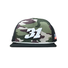 Garrett Gerloff Signature #31 Logo on a flat brim style hat. Sewn interior label. Black color way is made with 100% cotton! The Crimson, Navy and Camo color ways feature a UV Lite mesh material to keep you cool. Adjustable snap means one size fits all.